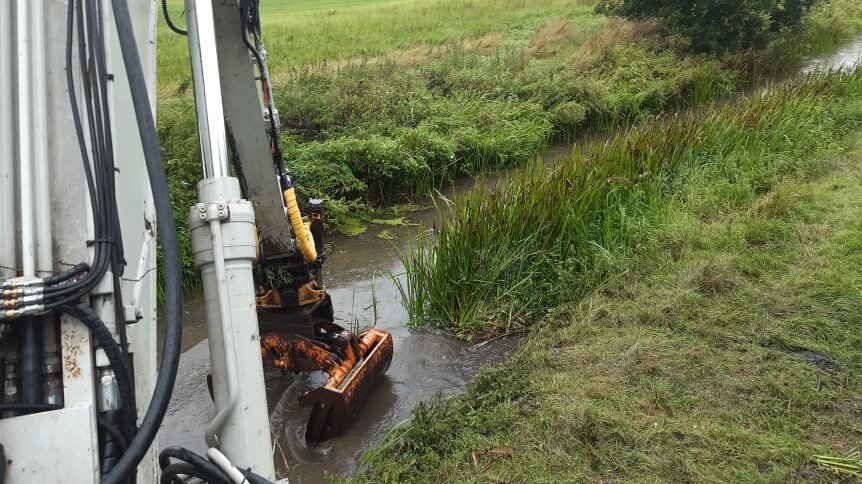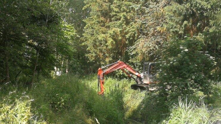 - 2 stk. Gravemaskiner 8,5 ton + 14 ton (med mejekurve til begge samt klippehoved til 14 ton maskinen, ud over alm. graveskovle)